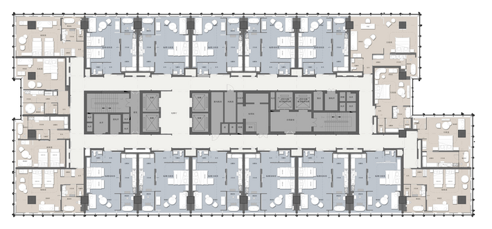 由于酒店建成后将成为当地政企接待、大型会议的主要场所,经商业前策分析,酒店室内设计的目标为新中式风格,且需突出凉州地域文化特色。MIND在本案设计中,着重考虑了本地政企需求,以及外地游客的感官体验,并在两者间找到适合的设计需求平衡点。